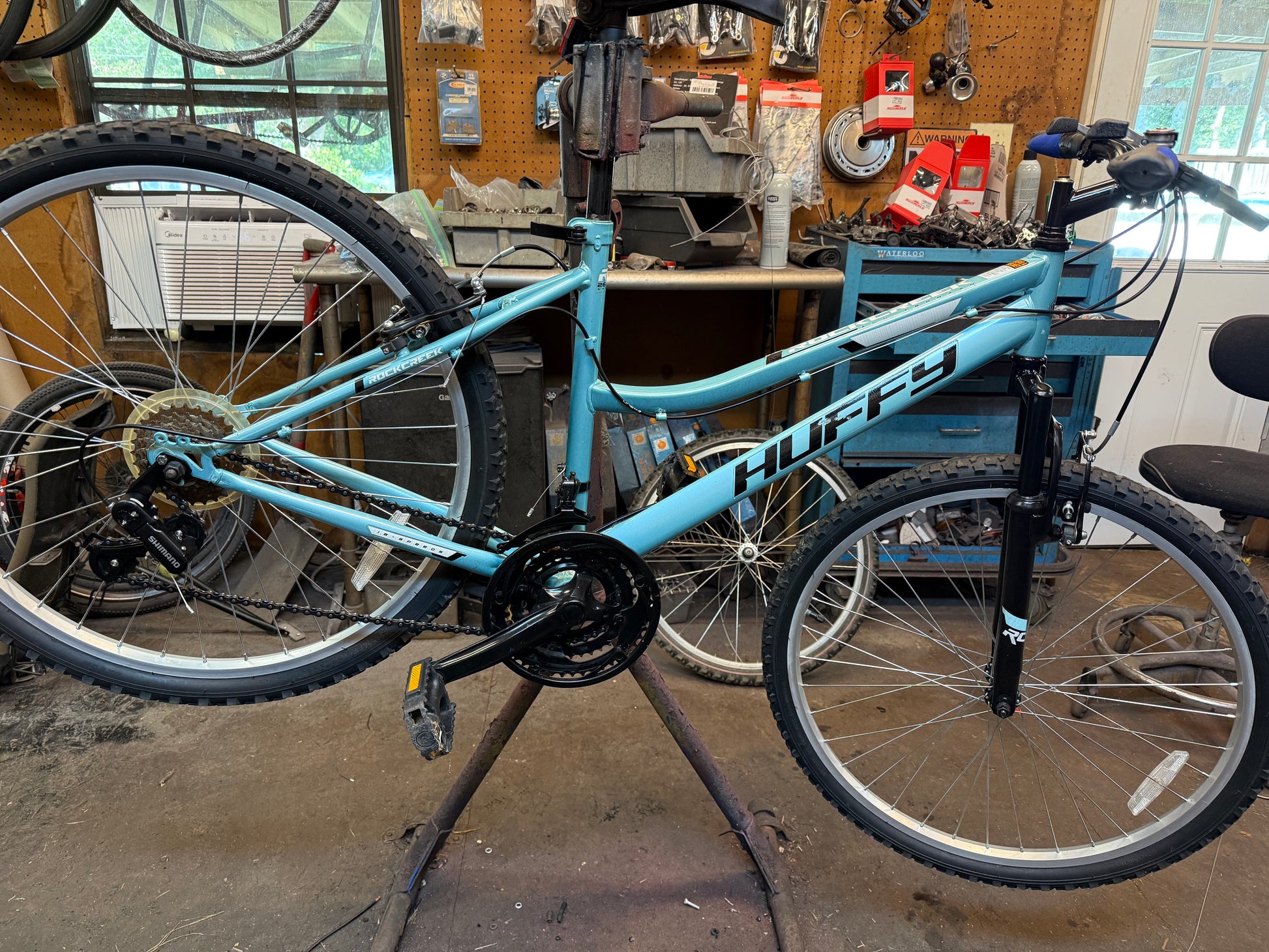 All repairs and adjustments have been made to include new brake and shift cables, cable housing, grips, brake pads, and chain.